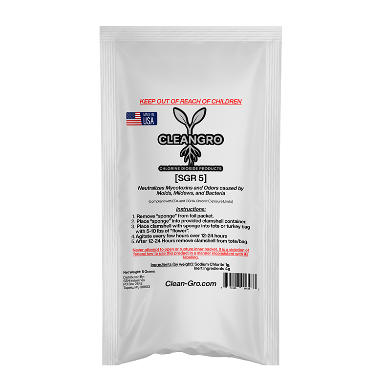 Keep your cannabis storage, grow rooms, and enclosed spaces clean, fresh, and contaminant-free with the CleanGro SGR-5 Extended Release Neutralizer. Powered by controlled-release chlorine dioxide (ClO₂) technology, the SGR-5 delivers continuous, science-backed air purification for up to 14 days — eliminating odors and removing mycotoxins at the source, not just masking them.